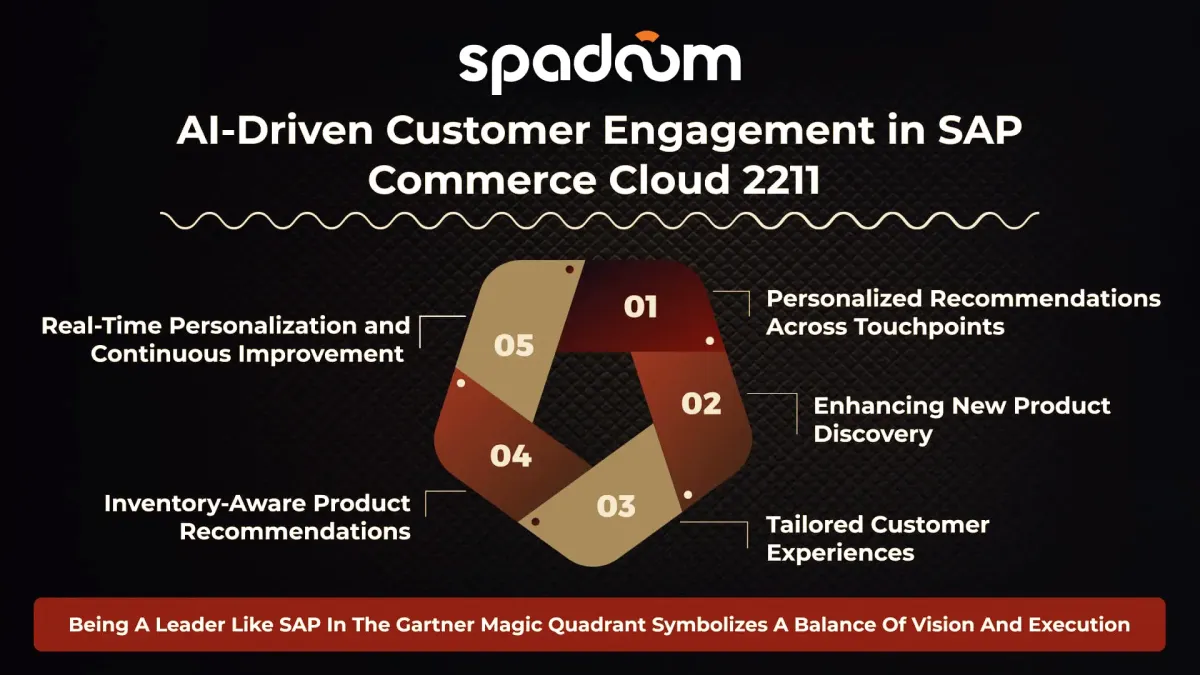 - AI-Driven Engagement- Spadoom excels in integrating AI for personalized customer interactions on SAP Commerce Cloud 2211. We implement smart recommendation engines, enhancing shopping experiences and boosting sales.