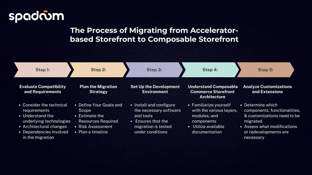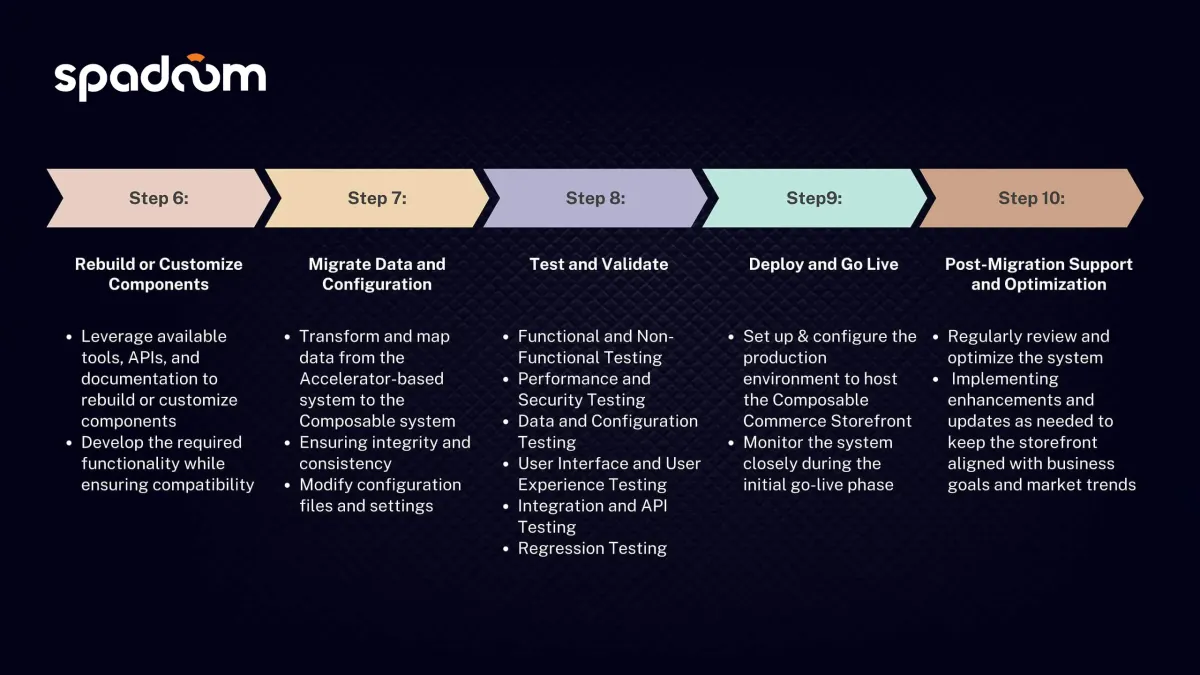 Questi passaggi forniscono una roadmap completa per la migrazione da uno storefront basato su Accelerator a un Composable Storefront. Seguendoli, potete garantire una migrazione di successo su Commerce Cloud che sfrutta i vantaggi del Composable Commerce. Questo migliorerà la vostra flessibilità, personalizzazione, scalabilità e capacità di integrazione.
