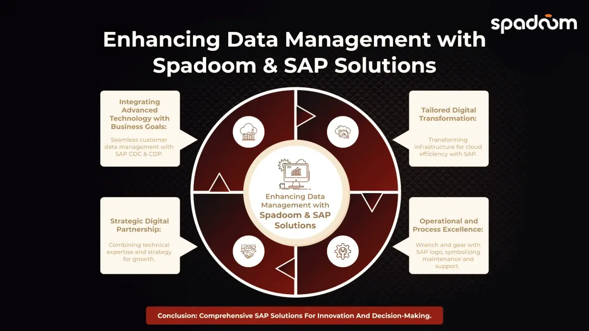 Collaborare con Spadoom per l’implementazione di SAP CDC e CDP significa ottenere una soluzione completa che copre tutto, dall’integrazione tecnologica all’eccellenza operativa. Il nostro team è impegnato ad abilitare l’innovazione, fornire soluzioni guidate dalla tecnologia e potenziare i tuoi processi decisionali, garantendo che la tua azienda sfrutti appieno le soluzioni SAP.